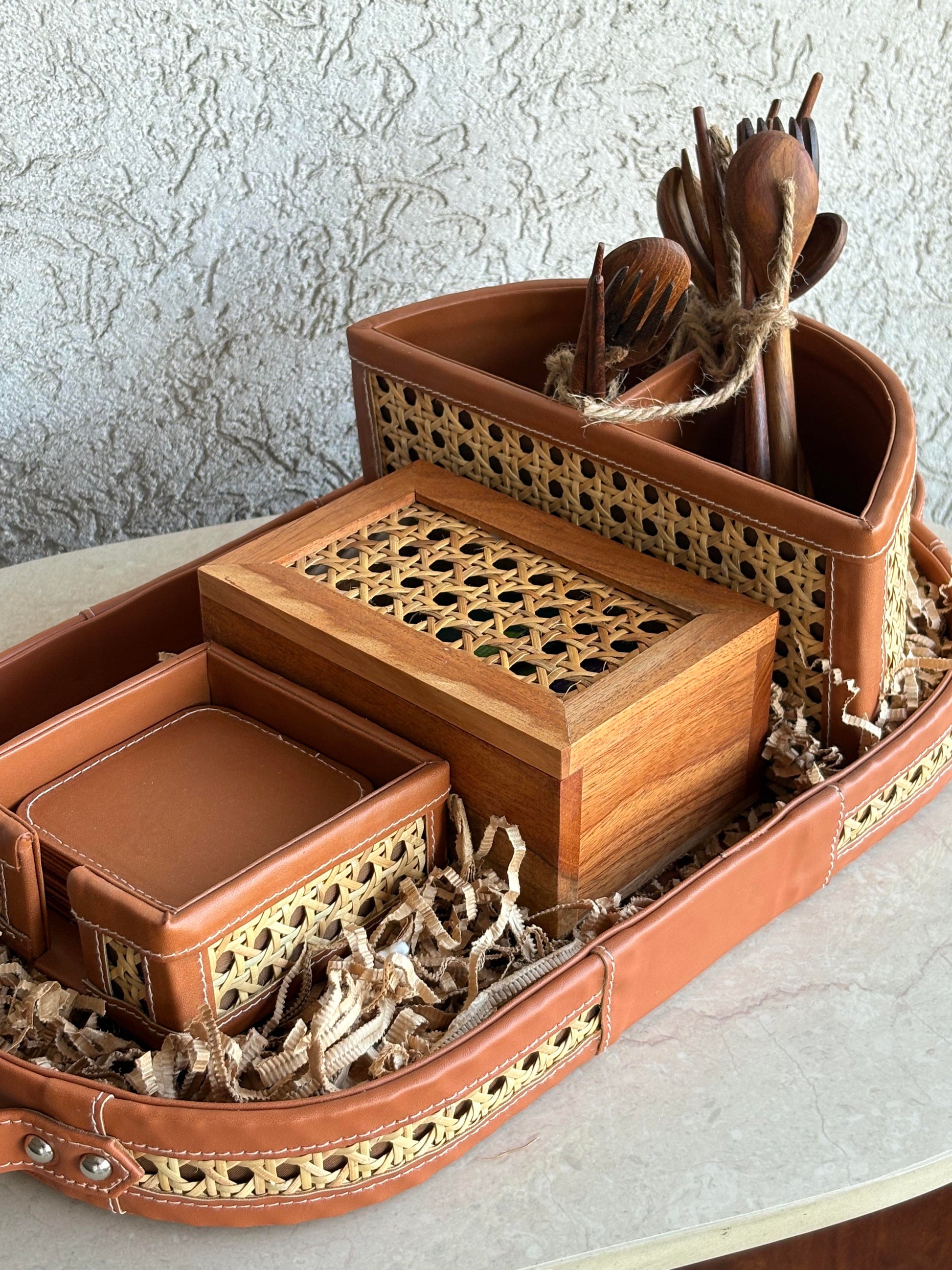 Tray, Coasters, Cutlery Holder & Tea Box – Ideal for Home & Office Celebrations